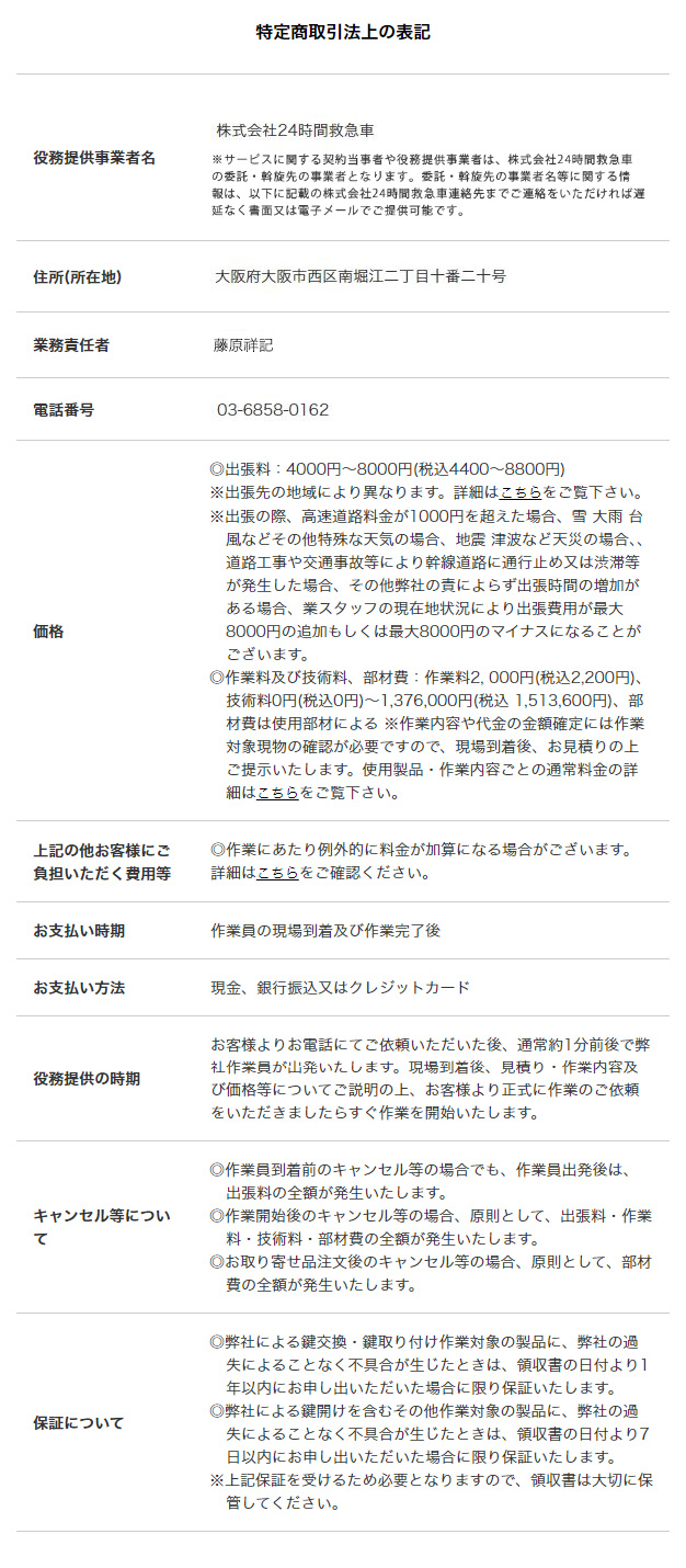 • ◎弊社による鍵交換・鍵取り付け作業対象の製品に、弊社の過失によることなく不具合が生じたときは、領収書の日付より1年以内にお申し出いただいた場合に限り保証いたします。